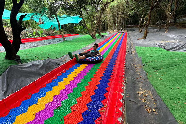 彩虹滑道又叫旱地滑道或七彩滑道,是一款旱地滑雪设备,因亮丽颜色与惊险刺激的玩法的结合成为最新网红无动力游乐项目。